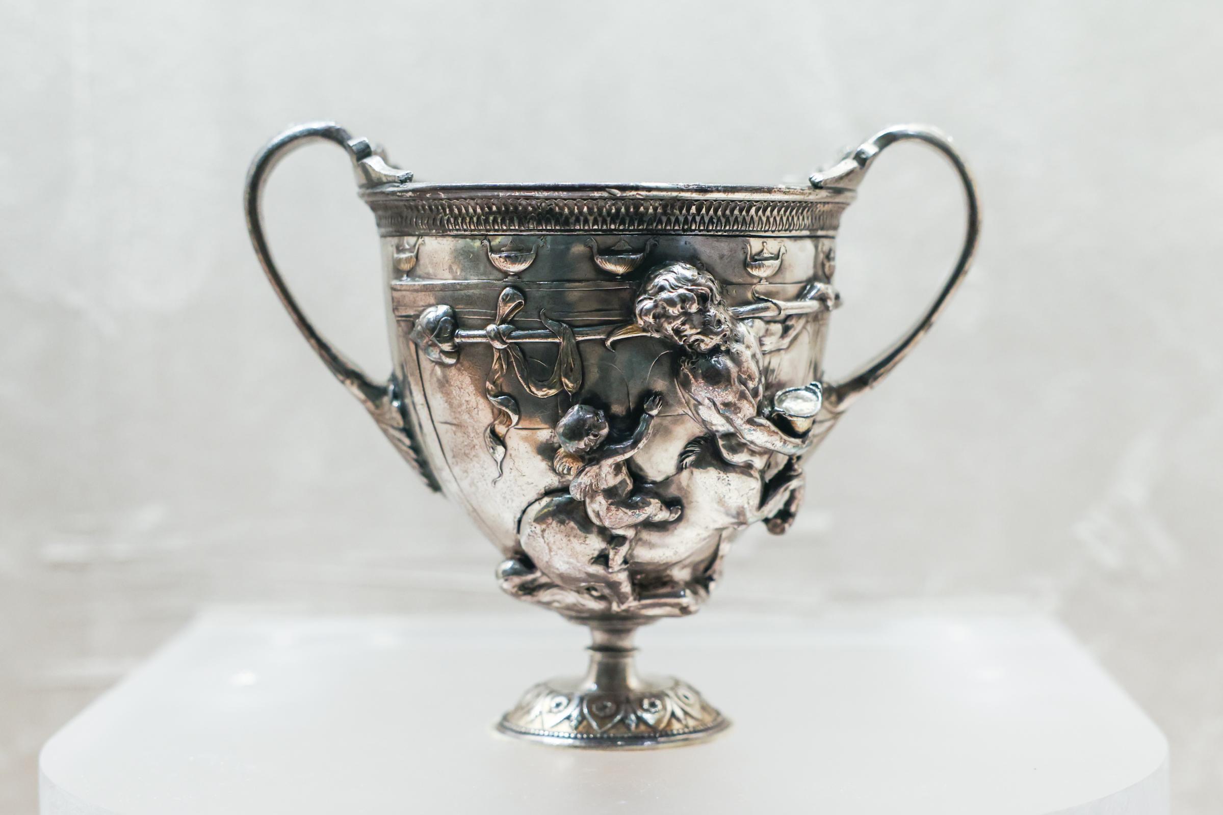 庞贝的贵族们钟情宴饮,宾客们盛装而来,99久久一区二区一边享用佳肴美酒,一边畅谈艺术与哲学。这些用具的审美至今看上去也不落伍。宾客们举起的酒杯工艺精湛,两件深腹酒杯器身上有半人马与小爱神浮雕。